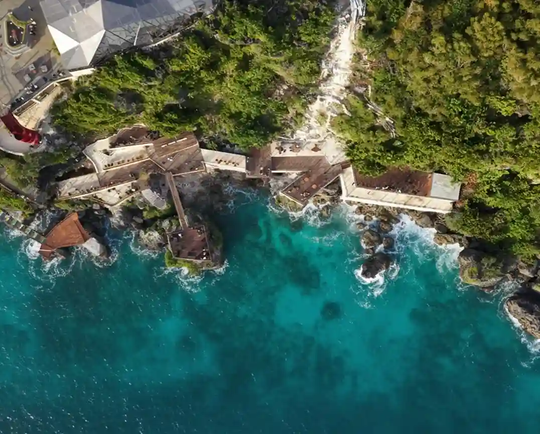 Dari area pantai, pengunjung dapat berjalan atau naik ke bagian tebing untuk mencapai area On The Rock Drini.